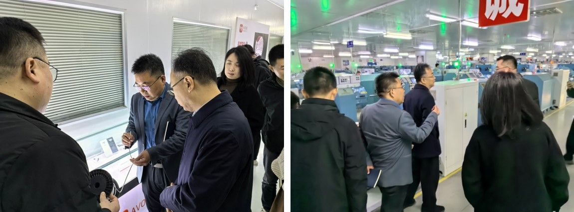随后,齐伟陪同卫建勋、岳现房等共同参观了公司的高速编织车间和常见智能终端产品的生产配套产品。进一步详细介绍了公司目前生产、经营、研发项目等情况。