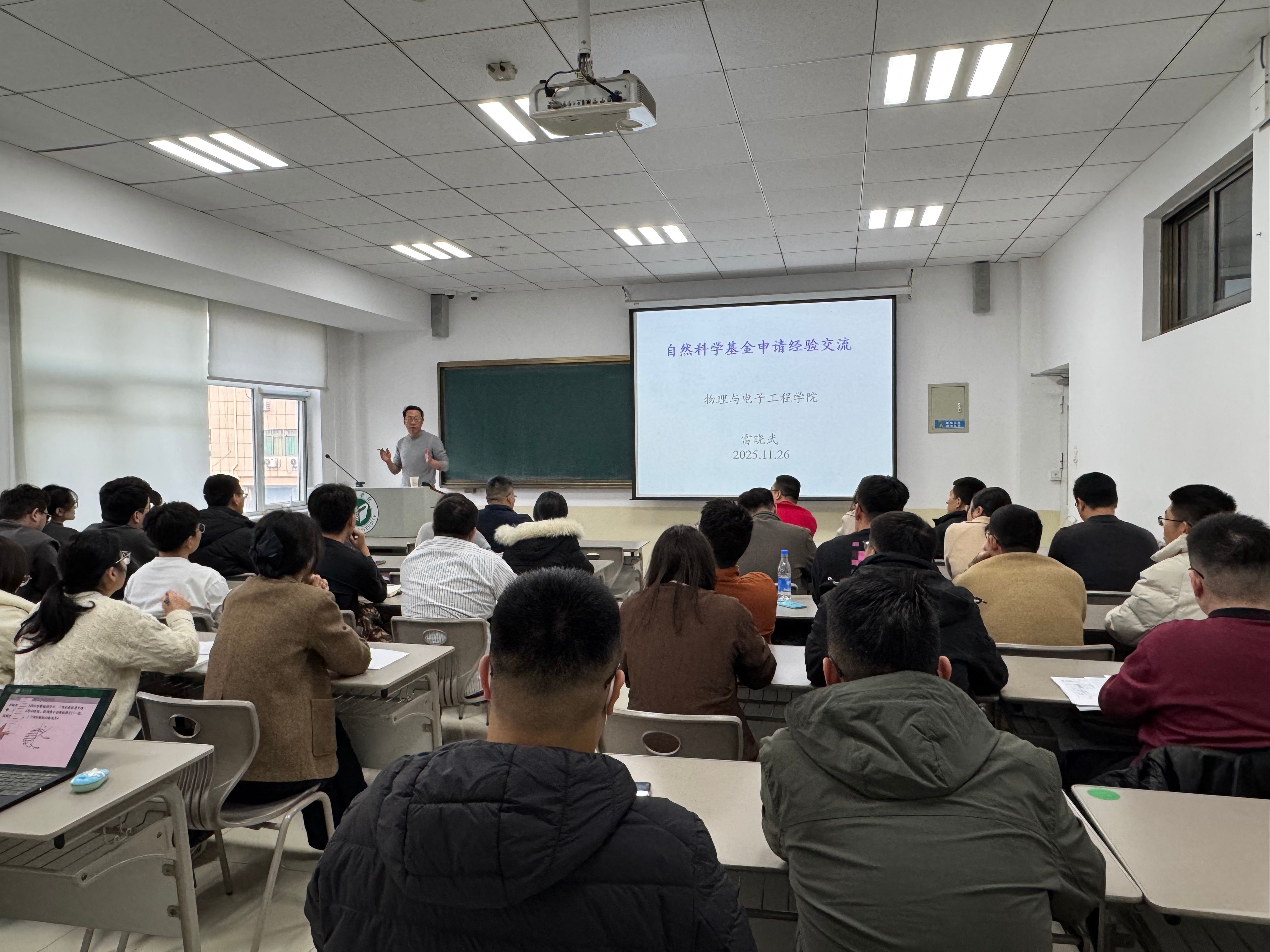 为扎实推进学科建设,营造浓厚学术氛围,提升教师科研项目申报能力,我院于11月26日下午邀请雷晓武教授在9#212教室举行讲座,就国家自然科学基金申请进行专项指导,并介绍了稀土功能材料实验室的建设情况。会议由岳现房院长主持。