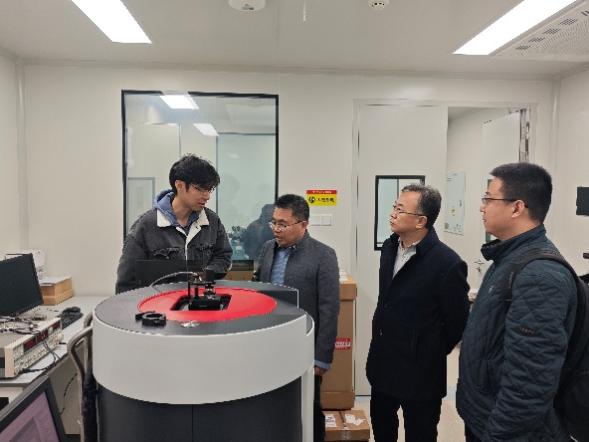 调研组一行参观了东南大学优势理科学科交叉平台。该平台由电子科学与工程学院的先进微纳加工中心与物理学院的极端物性表征中心协同共建,是支撑材料制备、器件加工到物性测试全链条研究的重要基础设施。这一跨学院、跨学科的重大平台建设模式,为我院探索物理与电子工程深度交叉、构建协同科研体系提供了极具价值的实践范例。