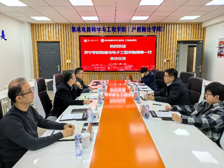 调研组后赴南京邮电大学集成电路学院调研交流,学院党委书记高翔、院长张吉良、副院长靳雷生、院长助理汪洋参加了交流。集成电路学院结合自身学科、专业和学位点建设的经验,为我院电子信息学科发展给予了指导,建议学院在专业设置上注重宽口径,覆盖设计、封装、测试等环节,科研上聚焦EDA设计、FPGA开发等方向,推行芯片设计贯通式实践(强调从设计到完成的全流程实践训练)的培养模式。校企合作方面,学院通过聘请企业负责人担任院长、教师赴企业挂职等方式,实现产教深度融合。双方还在人才引进、教师访学等方面达成了初步合作意向。
