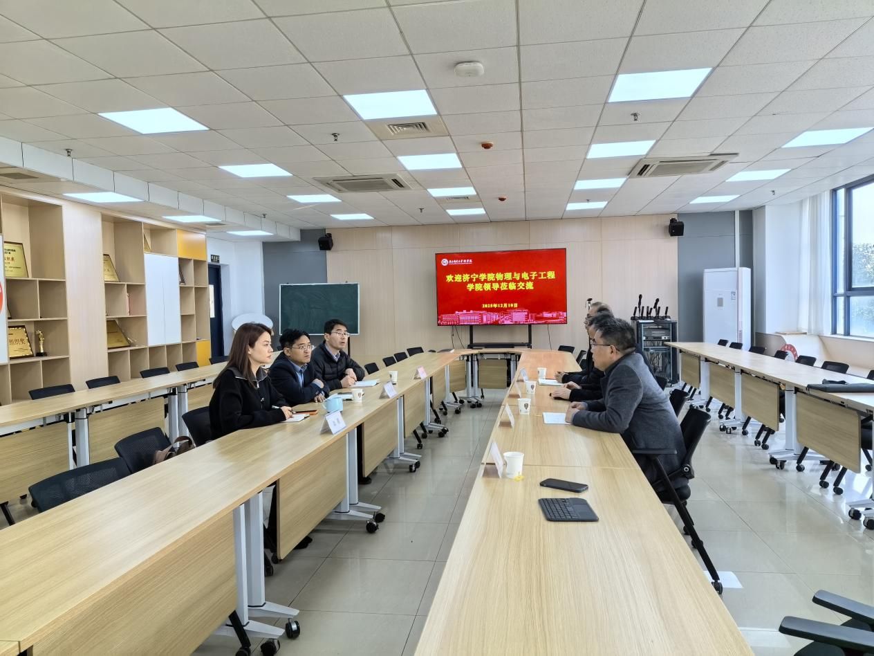 为学习借鉴高水平大学在学科建设、专业发展、人才培养、科研创新等方面的先进经验,12月8日至10日,物理与电子工程学院党委书记卫建勋、院长岳现房、学术副院长田涛、院长助理孟炎等一行4人组成的调研组先后赴东南大学电子科学与工程学院、东南大学理学院、南京邮电大学理学院及南京邮电大学集成电路学院进行深入调研交流。