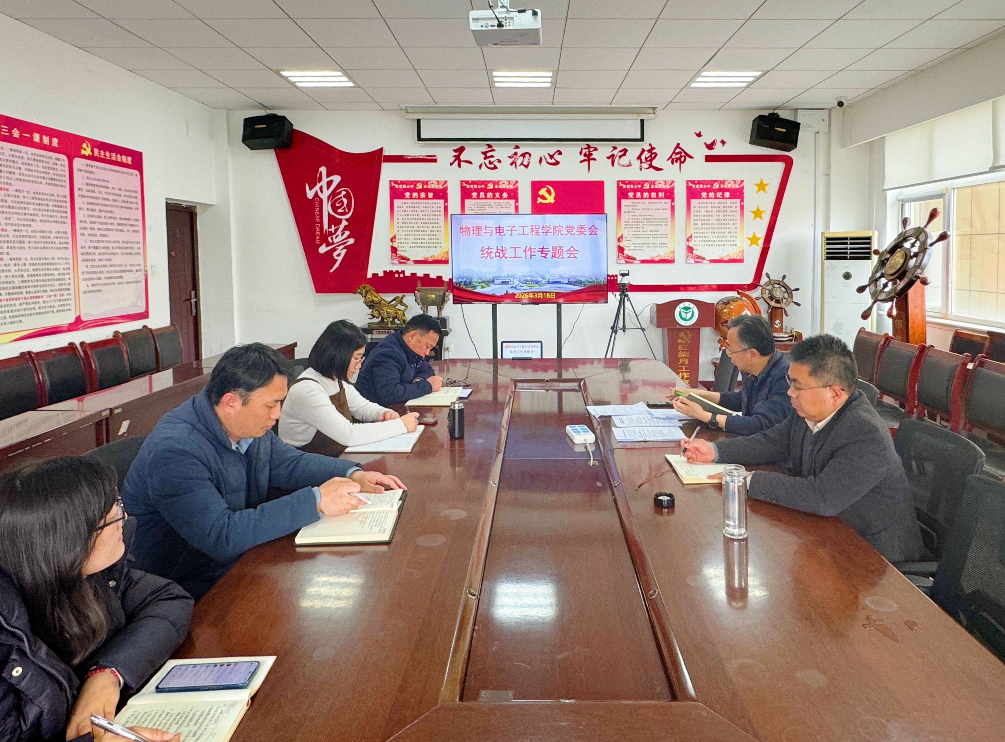 为深入学习贯彻习近平总书记关于新时代统战工作的重要思想,全面落实学校统战工作各项部署要求,压紧压实统战工作政治责任,3月18日下午,物理与电子工程学院召开党委会,专题研究统战工作。学院党委书记卫建勋主持会议,岳现房、辛允东、翟倩倩、孟凡华、赵杨洋等党委成员参加会议。