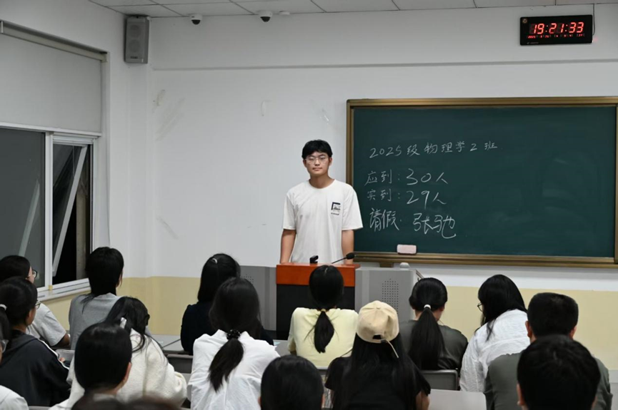 25物理学1班带班张亚楠则从“破冰”与“规划”双管齐下:先主持自我介绍环节,以自身经历鼓励新生分享兴趣,快速拉近距离;随后对照专业培养方案,拆解选课流程、梳理优先级,帮新生理清大学学习“第一份清单”。