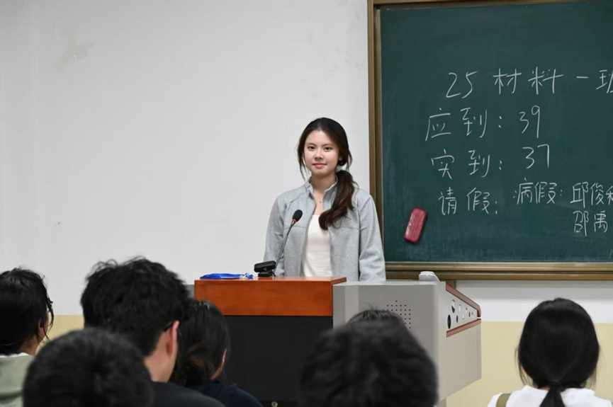 25材料科学与工程2班带班成子怡,在值班期间关注新生参与班级事务的积极性:发现不少同学对竞选班委持观望态度,她主动分享自身经历:“班委工作能锻炼沟通协调能力,还能快速熟悉同学、融入集体,是成长的好机会”;细致解答竞选流程、职责分工等疑问,鼓励大家别怕尝试,带动更多新生主动报名,迈出参与班级建设的第一步。
