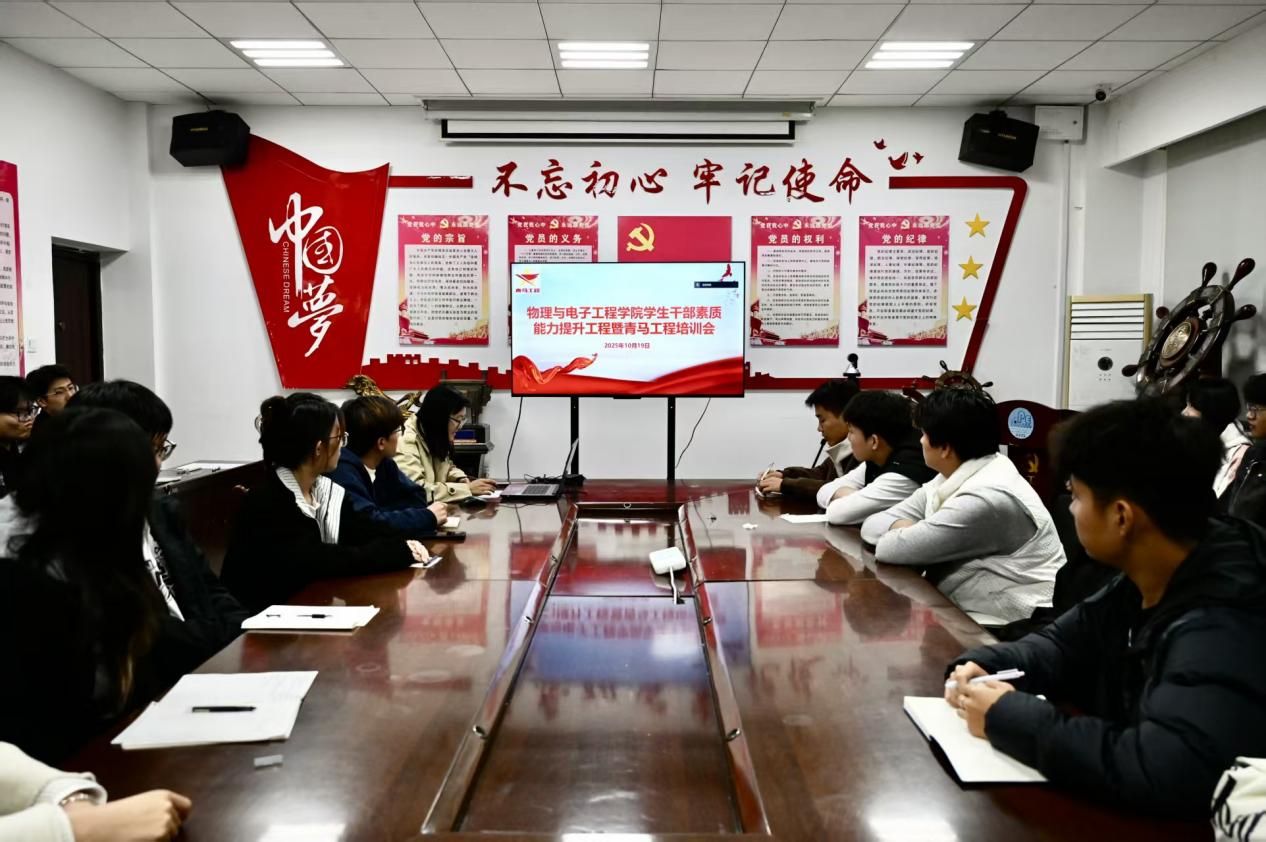 为落实学院学生干部素质能力提升工程,帮助学生明晰公务员备考方向、科学规划职业发展路径,物理与电子工程学院于10月19日晚在9号楼二楼会议室召开优秀校友分享会暨青马工程培训会。会议由学院团委书记赵杨洋主持,新一届全体学生会成员及部分毕业班同学参加。