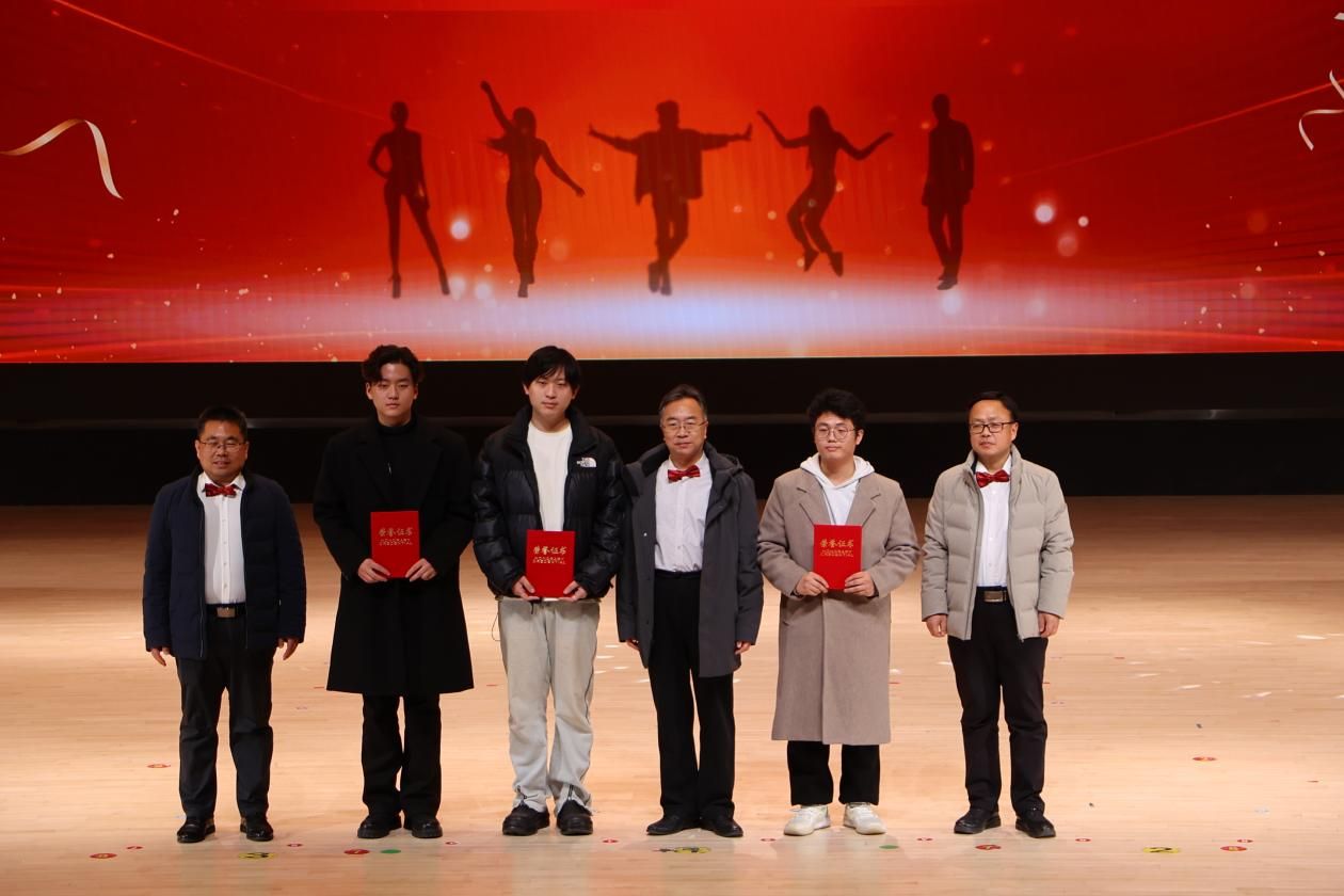 比赛间隙,音乐学院“舞艺之群”、物电学院“OurParty青春舞会”社团带来的活力舞蹈点燃全场;上届十佳歌手刘长远的助唱表演余音绕梁;卫建勋、岳现房、辛允东三位领导登台领唱《我和我的祖国》,熟悉的旋律引发全场大合唱,师生们以歌声抒发家国情怀,传递对学院发展的美好期许。经过专业评委团的严谨评审,大赛最终评选出冠亚季军及七名十佳歌手,学院领导与老师们为获奖选手颁发荣誉证书,见证他们的闪耀时刻。