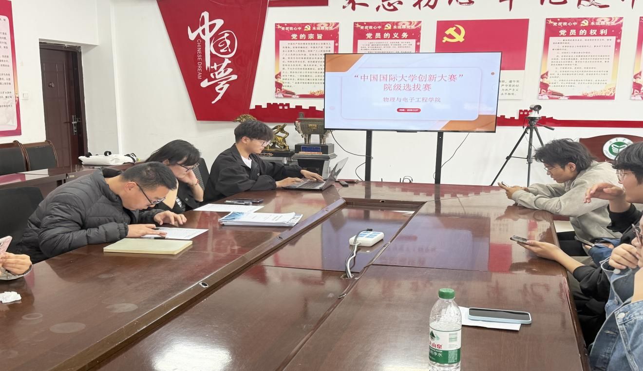 为深入推进创新创业教育,激发学生创新活力,锤炼实践创业本领,近日,物理与电子工程学院“中国国际大学生创新大赛”院赛答辩会在9号楼2楼会议室拉开帷幕。本次答辩由团委书记赵杨洋、团委副书记明强担任评委,为参赛项目提供专业指导与点评。